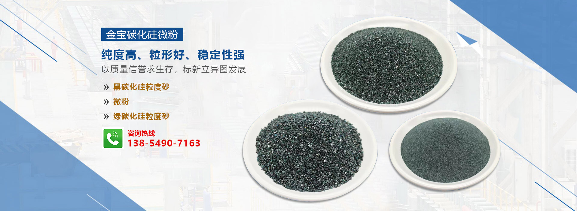 主要经营:黑碳化硅粒度砂、微粉和绿碳化硅粒度砂、微粉的生产销售,所生产的碳化硅微粉具有纯度高、粒形好、稳定性强等特点,